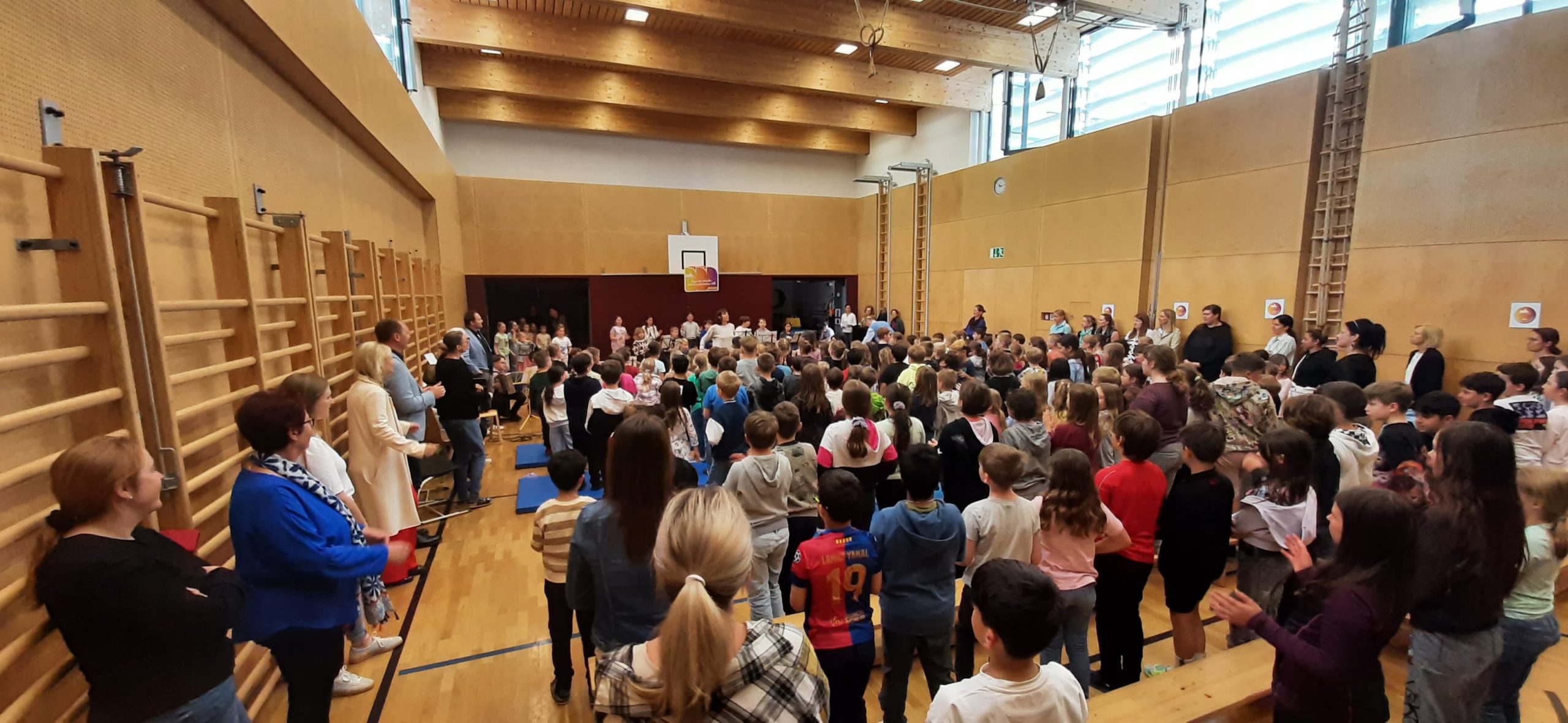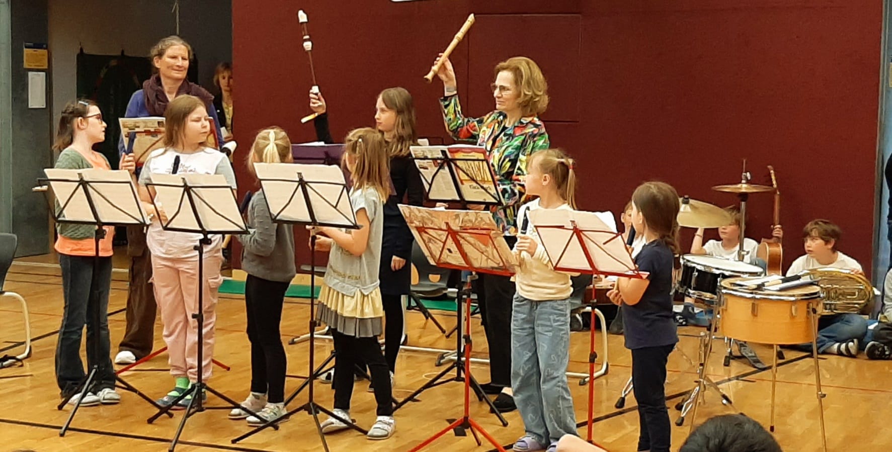 32 Schülerinnen und Schüler aller vier Schulstufen präsentierten ihr musikalisches Können auf verschiedensten Instrumenten. Das vielfältige Programm führte durch Lieder und Musikstücke aus aller Welt: von „The Coconut Song“ der Bläserklasse über einen Flamenco am Klavier, „Madagaskar“ auf dem Schlagwerk und dem japanischen Stück „Kaki no Tane“, ebenfalls am Klavier, bis zur schwungvollen „Zick-Zack-Polka“ auf der Steirischen Harmonika.